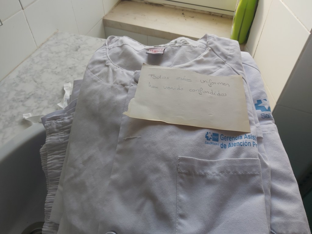 Los profesionales que atendemos los Servicios de Atención Rural (SAR) de Madrid, hacemos guardias de 12, 17 o 24 horas y disponemos lavandería industrial para lavar nuestros uniformes, sábanas, toallas, etc. En muchas ocasiones la ropa que devuelve la lavandería llega con innumerables defectos, que no se pueden subsanar hasta la semana siguiente.