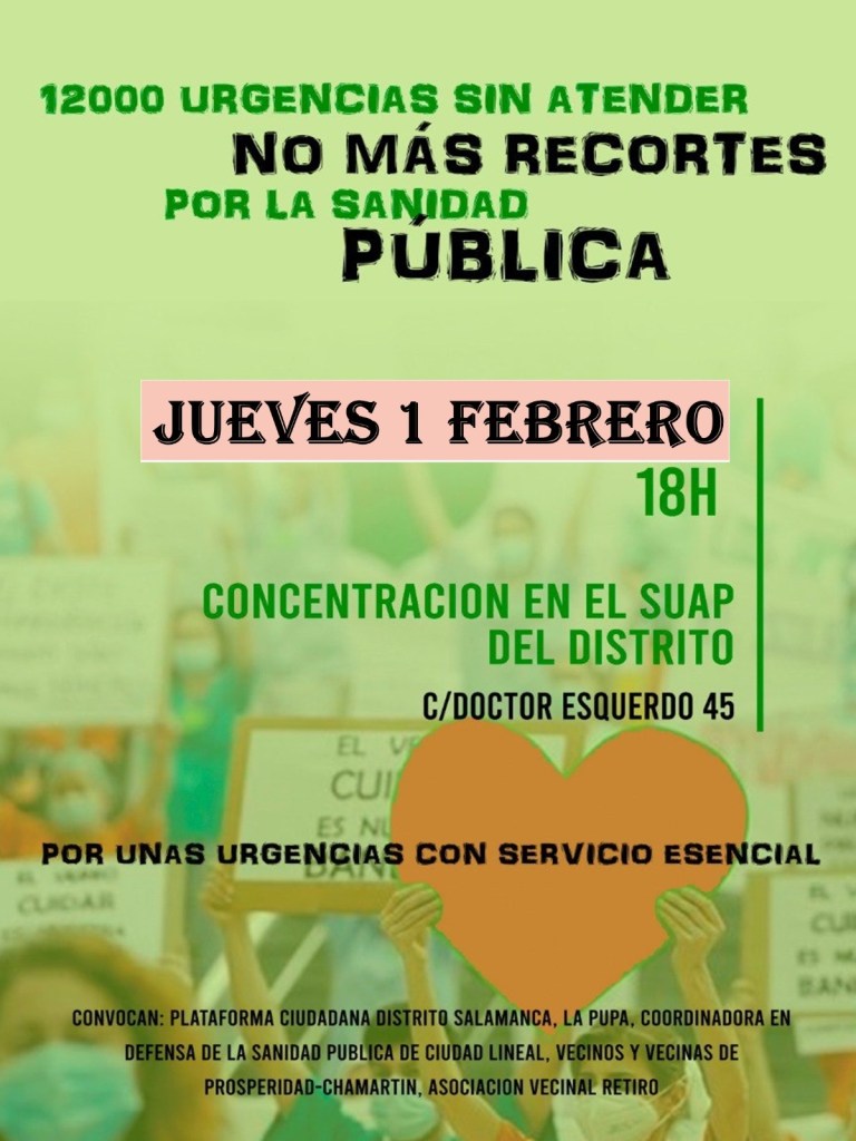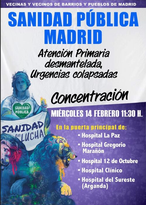Dada la situación de la Sanidad Pública en la Comunidad de Madrid las asociaciones de vecinas y vecinos de Barrios y Pueblos de Madrid y las plataformas en defensa de la Sanidad Pública están reactivando las movilizaciones para denunciar la situación precaria de la atención primaria, las Urgencias Extrahospitalarias y el colapso de los hospitales.